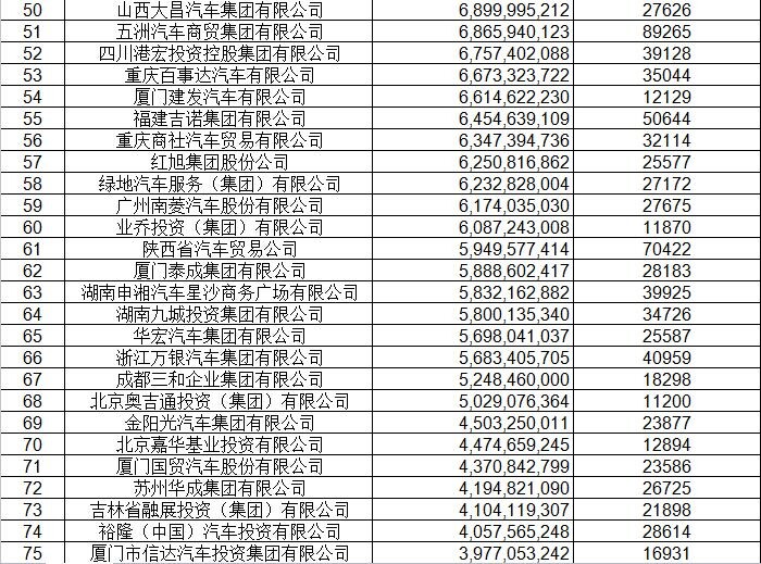 經(jīng)銷商集團百強排行表